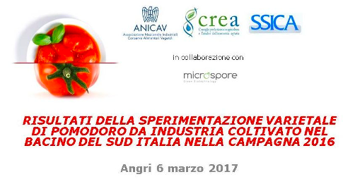 Risultati della sperimentazione varietale di pomodoro da industria coltivato nel bacino del Sud Italia nella campagna 2016 – Seminario di presentazione – Angri, 6 marzo 2017